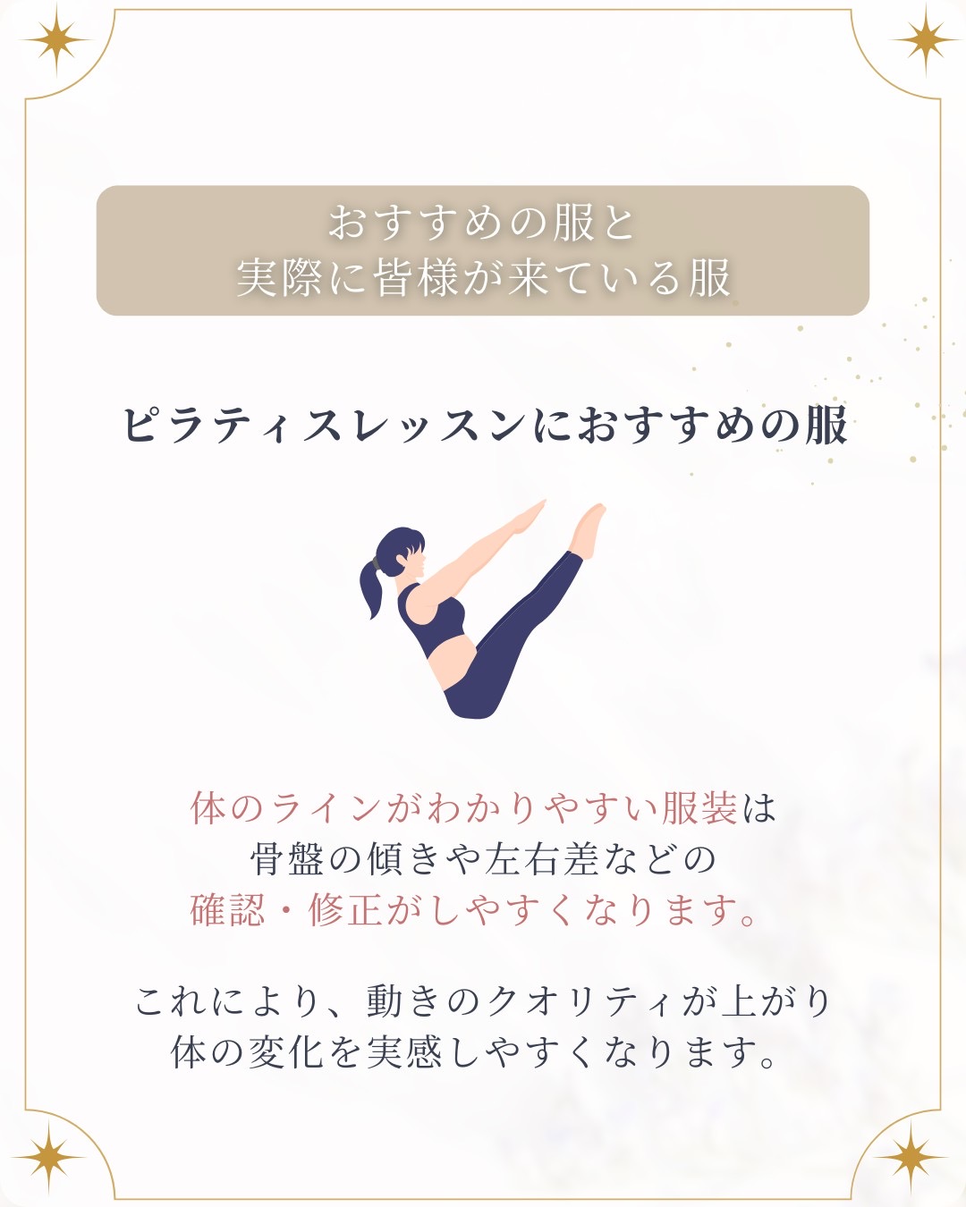 ピラティスの服装は、ピタッとしたものが多くて